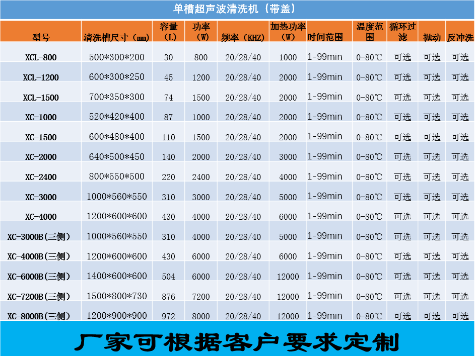 單槽超聲波清洗機是由超聲發生源與清洗槽分體結構設計,內外全不銹鋼制作,使用方便,易于保養。超聲換能器可采用單方位或多方位輻射,功率強勁,清洗效果好。可根據用戶需要增設功率調節、時間、溫度、水位自動控制及工件自動運行等功能,適用于清洗難度較大及清潔度要求較高的各種工件的清洗。