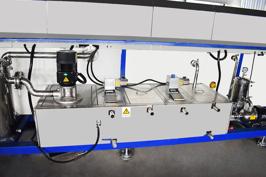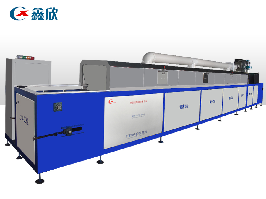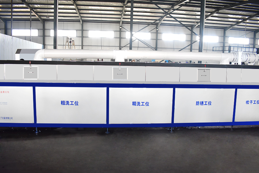 該設(shè)備有上下料網(wǎng)帶、超聲波清洗工位、噴淋漂洗工位、高壓風(fēng)切、熱風(fēng)烘干工位、溫控水加熱系統(tǒng)、風(fēng)機(jī)、溫控空氣加熱系統(tǒng)、移動式風(fēng)刀、PLC+觸摸屏控制系統(tǒng)、管路系統(tǒng)及智能電器控制系統(tǒng)等組成。自動進(jìn)排液和自動加溫系統(tǒng)完全實現(xiàn)了無人干預(yù),自動運(yùn)行,很大程度上降低了工人的勞動強(qiáng)度。先進(jìn)的霧氣處理系統(tǒng)可以將清洗時產(chǎn)生的霧氣冷凝回流,空氣經(jīng)過濾和活性炭吸附后排出。
