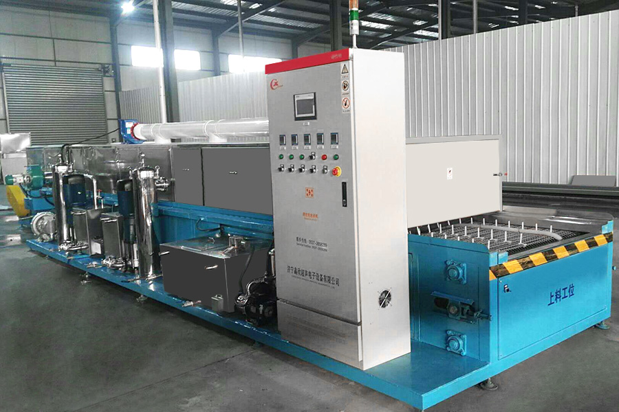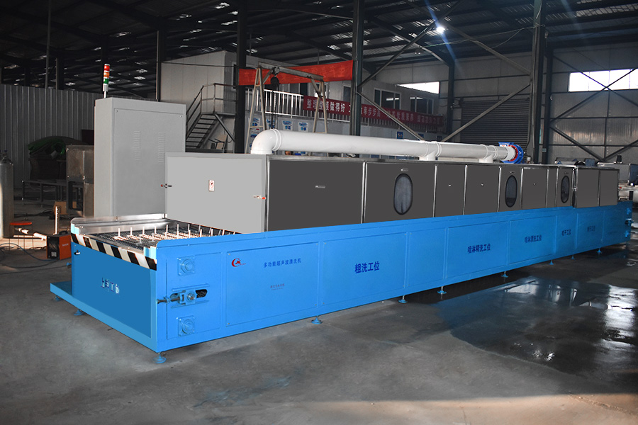 該設(shè)備有上下料網(wǎng)帶、超聲波清洗工位、噴淋漂洗工位、高壓風(fēng)切、熱風(fēng)烘干工位、溫控水加熱系統(tǒng)、風(fēng)機(jī)、溫控空氣加熱系統(tǒng)、移動(dòng)式風(fēng)刀、PLC+觸摸屏控制系統(tǒng)、管路系統(tǒng)及智能電器控制系統(tǒng)等組成。自動(dòng)進(jìn)排液和自動(dòng)加溫系統(tǒng)完全實(shí)現(xiàn)了無(wú)人干預(yù),自動(dòng)運(yùn)行,很大程度上降低了工人的勞動(dòng)強(qiáng)度。先進(jìn)的霧氣處理系統(tǒng)可以將清洗時(shí)產(chǎn)生的霧氣冷凝回流,空氣經(jīng)過(guò)濾和活性炭吸附后排出。
